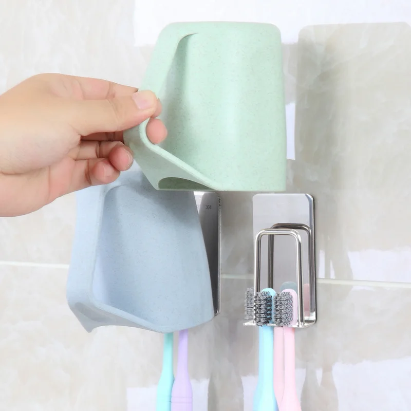 Addition Information of 1Pcs double toothbrush holder without trace wall hanging high quality stainless steel bathroom prod