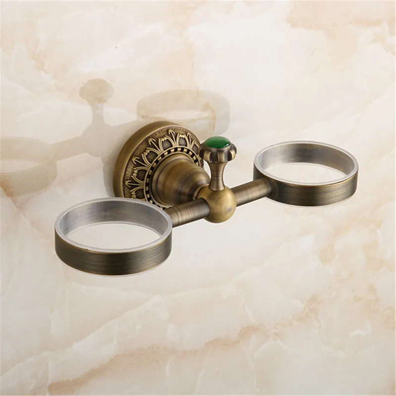 Sale Price of Bathroom Accessories Products antique Solid Brass bronze Finished Double Cup Holder RackToothbrush