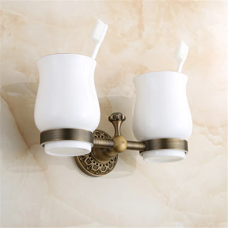 Bathroom Accessories Products antique Solid Brass bronze Finished Double Cup Holder RackToothbrush