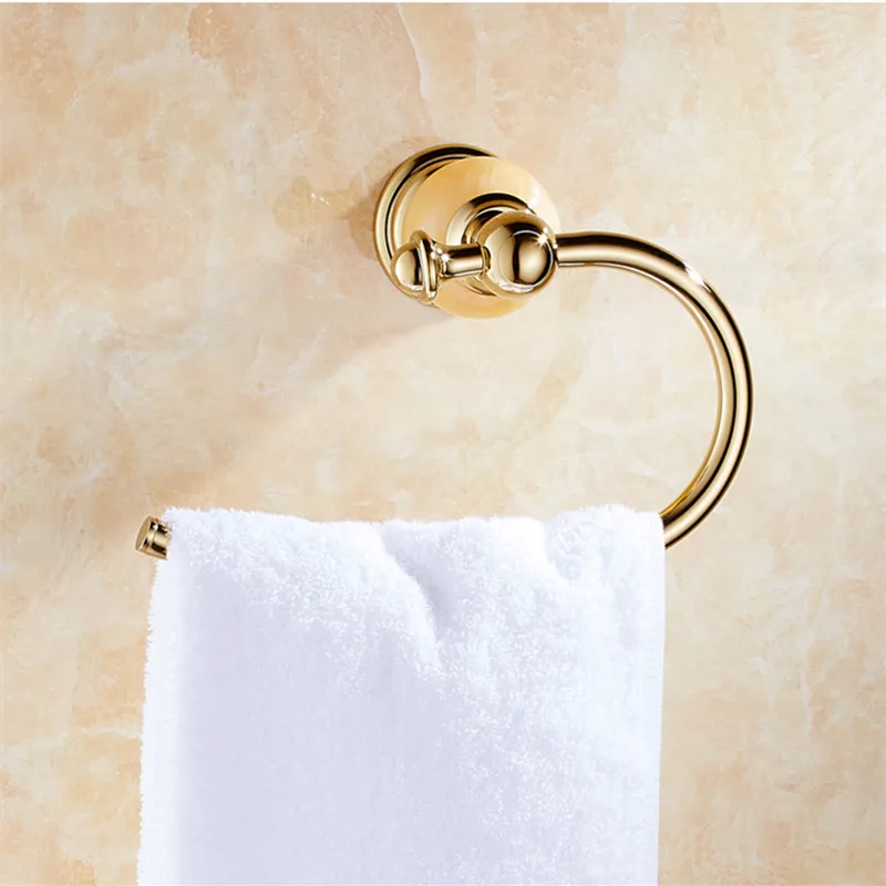 Discount Bathroom Golden Towel Ring with Jade Base holder Brass Copper towel rack Bathroom Accessories Produ