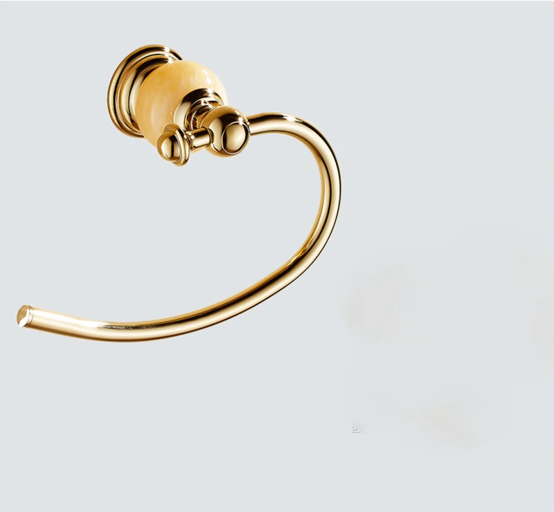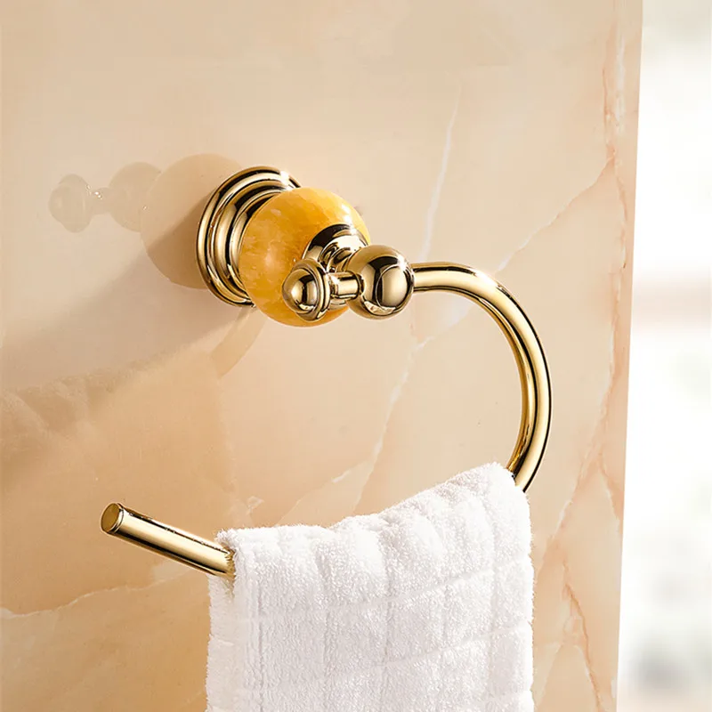 Bathroom Golden Towel Ring with Jade Base holder Brass Copper towel rack Bathroom Accessories Produ