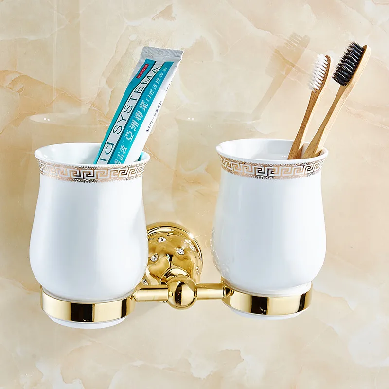 Addition Information of Antique Bathroom Accessories Luxury European Golden Brass Toothbrush Tumbler With Ceramic Holders W