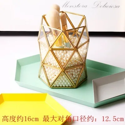 European Glass Makeup organizer Cup with Golden Covered Edge Bathroom Makeup Organizer plate make u