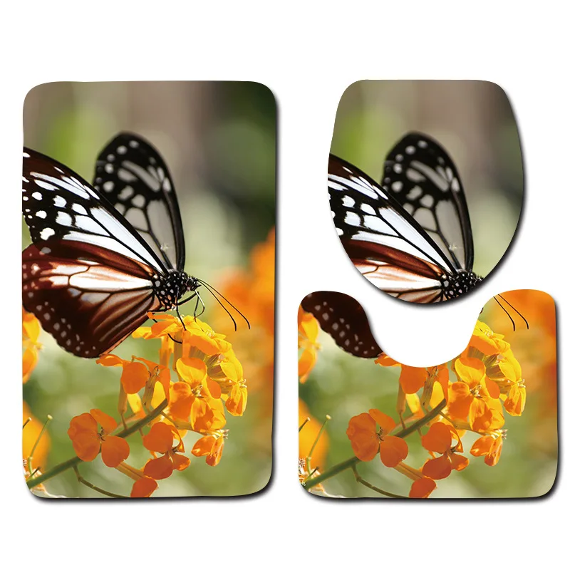 Hot Sale 3pcs/set New Pattern Bathroom Carpet Set Skidproof Anti Slip Pedestal Rug Lid Toilet Cover Bath Mat