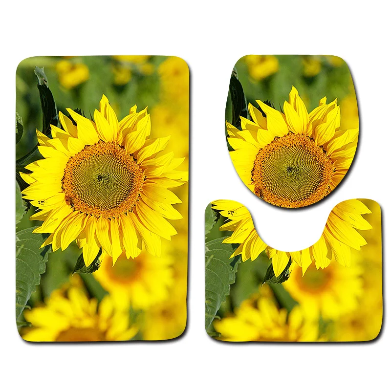 3pcs/set New Pattern Bathroom Carpet Set Skidproof Anti Slip Pedestal Rug Lid Toilet Cover Bath Mat
